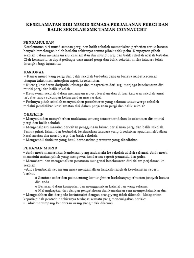 Keselamatan Diri Murid Semasa Perjalanan Pergi Dan Balik Sekolah Pdf